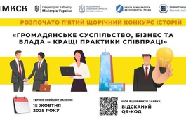 Центр демократії та верховенства права оголошує про початок прийому заявок на участь у п'ятому щорічному Конкурсі історій, присвяченому найуспішнішим практикам співпраці між громадянським суспільством, бізнесом та владою. Про конкурс Ініціатива реалізується спільно з Міністерством культури та стратегічних комунікацій України, Секретаріатом Кабінету Міністрів України, Національною соціальною сервісною службою України та Глобальним договором ООН в Україні. Міжсекторальне партнерство набуває особливого значення в умовах повномасштабної війни, коли ефективне реагування на суспільні …21 вересня 2025